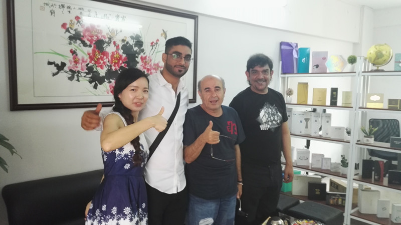 Раджи, генеральный директор компании Global Perfumes Industry FZE из ОАЭ, посетил нашу фабрику вместе со своим помощником в 2017 году. Он хочет сделать особый оформленные коробки для духов сделать свой бренд уникальным.