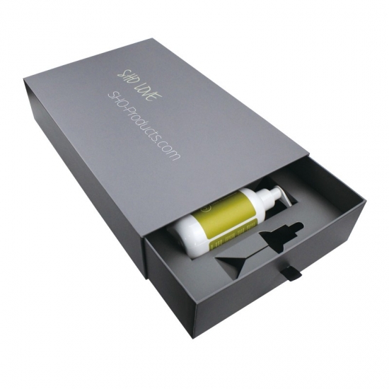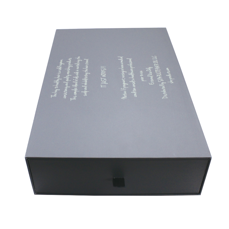 Это матовый серый цвет. выдвижной ящик для косметических средств по уходу за кожей который сделал из художественной бумаги C2S плотностью 157 г + серого картона плотностью 1200 г ,полностью серая печать на коробке с индивидуальным логотипом и текстом, матовая отделка поверхности делает ее высококлассной и стильной.
