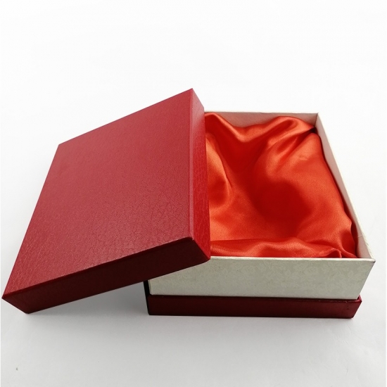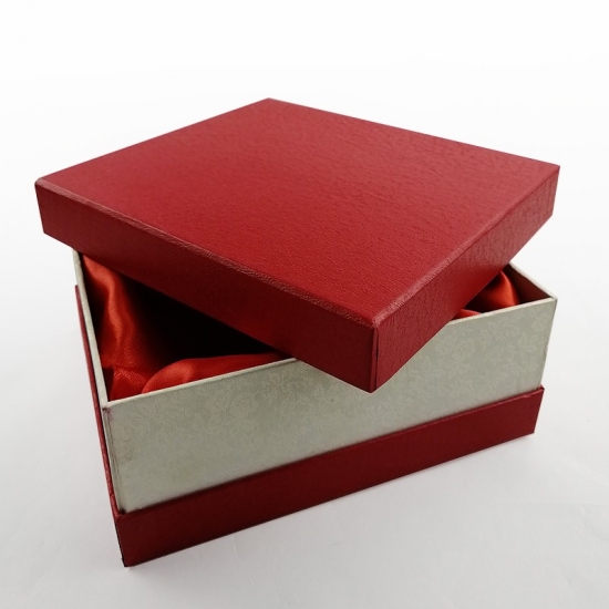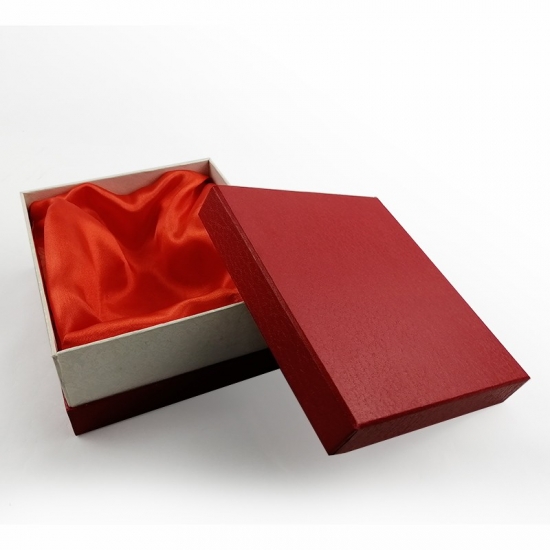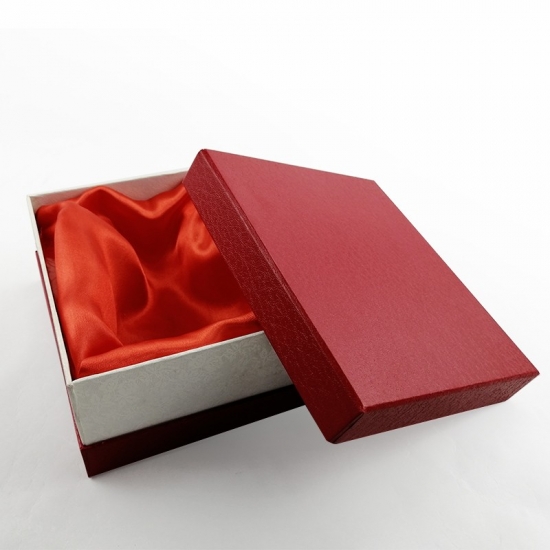 Это огромная квадратная красная подарочная коробка с крышками, которые сделаны из специальной бумаги + 1200 г серого картона, внутренняя обивка может быть выполнена из красной атласной ткани, соответствующей цвету внешней стороны коробки.