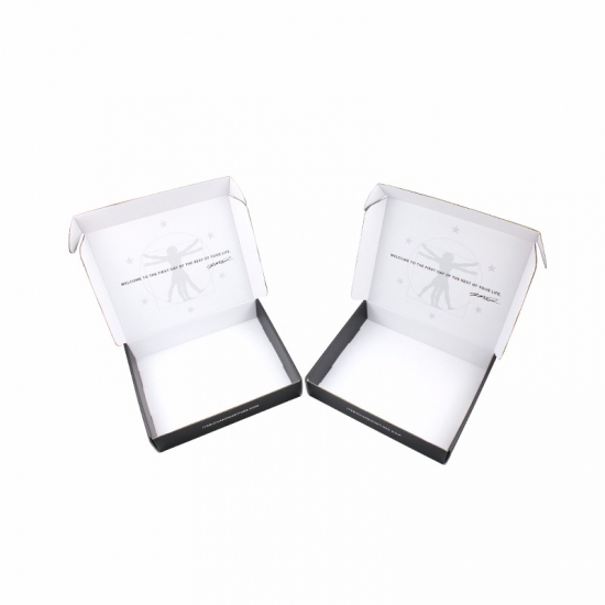 Это упаковочные коробки для черной почтовой рассылки который сделан из 250 г CCNB+BE флейты+ 250 г CCNB Это простой и удобный почтовый ящик, снаружи черного цвета с индивидуальным логотипом, внутри - индивидуальный рисунок белого цвета.