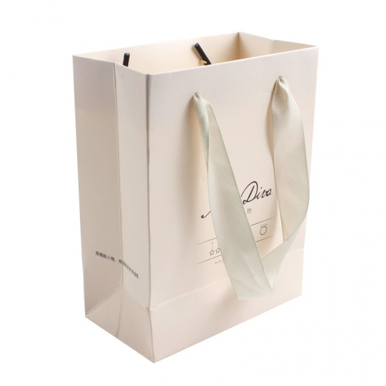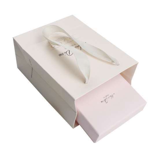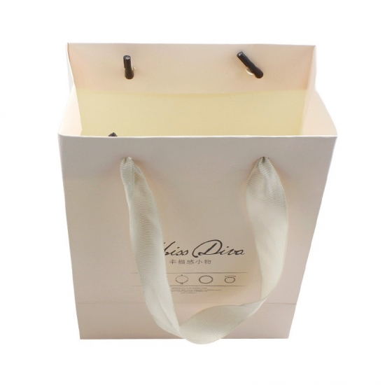 Эти небольшие подарочные пакеты с печатью в цветовой гамме CMYK на художественной бумаге плотностью 250 г/м² C1S с матовой отделкой и ленточными ручками с пластиковым наконечником. Популярный стиль упаковки для рекламных подарков, таких как ювелирные изделия, косметика, детская обувь и т. д.