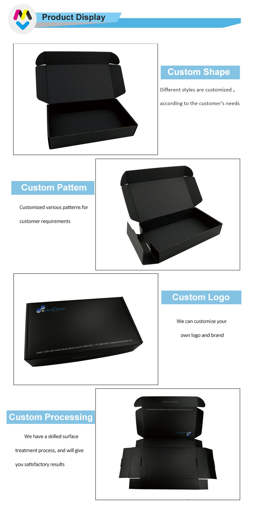 3) Отделка поверхности: 2-сторонняя полноцветная печать черного цвета с матовой ламинацией
