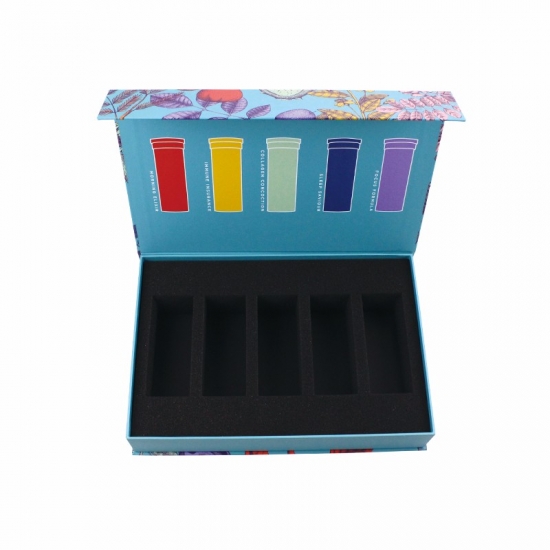 Это обычай. подарочная коробка с магнитной застежкой который сделал из художественной бумаги C2S плотностью 157 г + серого картона плотностью 1200 г, внешняя сторона коробки имеет полноцветную графику с матовой поверхностью, внутри коробки изготовленная на заказ черная вставка из губки, которая будет удерживать продукцию на месте.