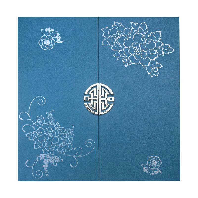отделка коробки: Печать синей краской Pantone, матовая ламинация пленкой, тиснение, горячее тиснение золотой фольгой,