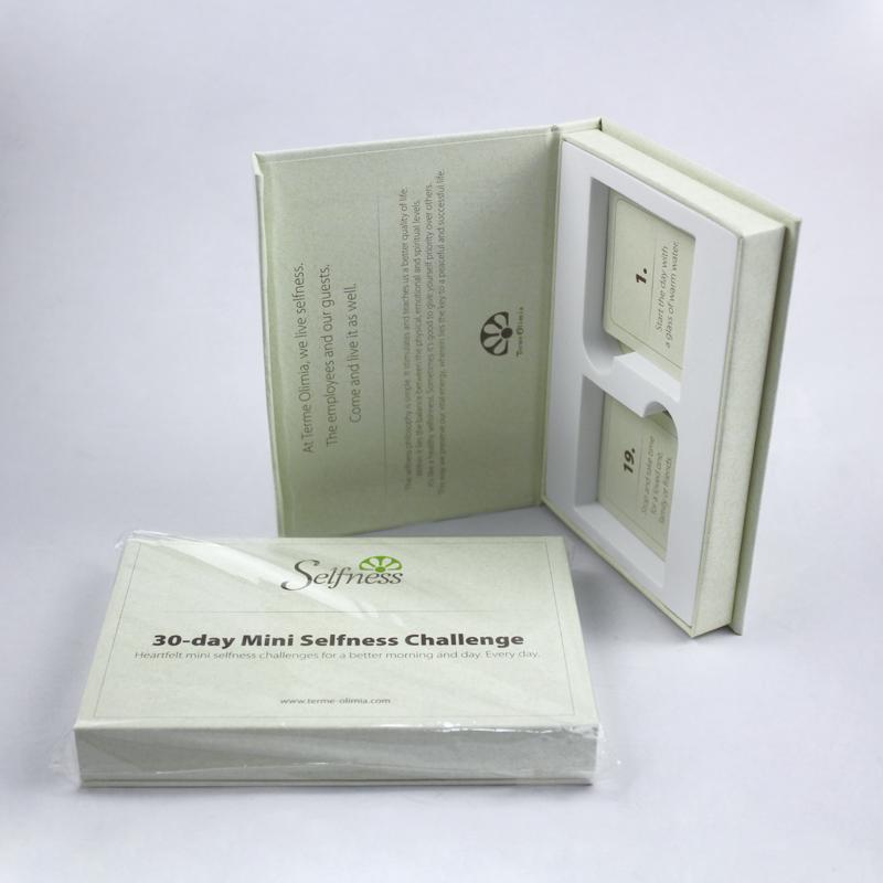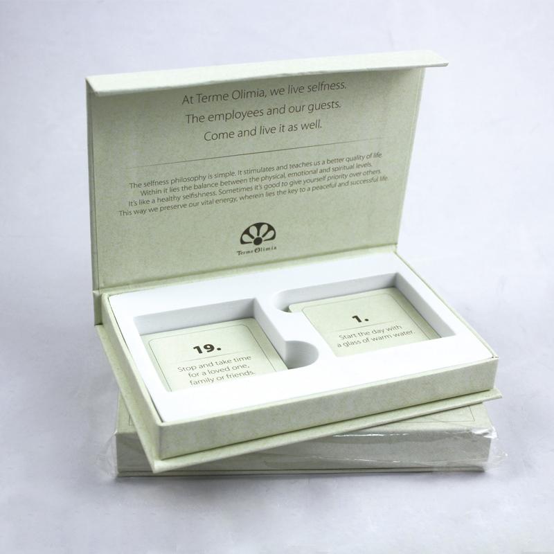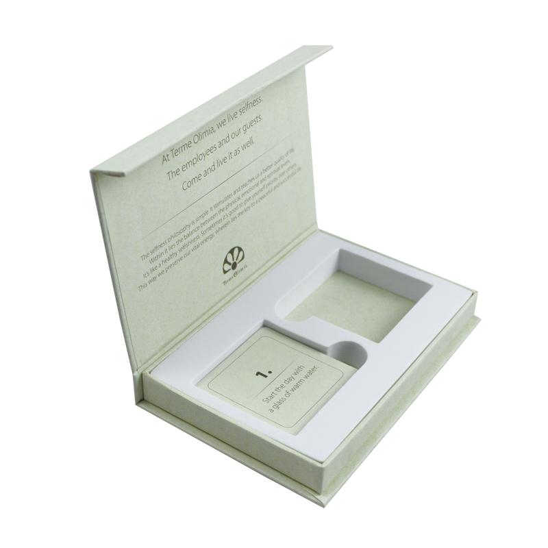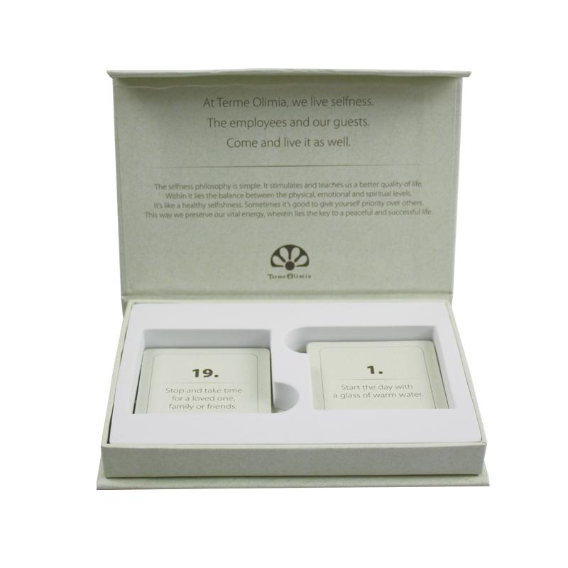 Это небольшая магнитная подарочная коробка в форме книги, изготовленная из художественной бумаги C2S плотностью 157 г и серого картона плотностью 1200 г, вставка из прочной белой пены EVA, которая будет удерживать маленькие карточки на месте. Применение: любые виды упаковки продуктов и подарков, парфюмерия, ювелирные изделия, косметика, одежда и т. д.