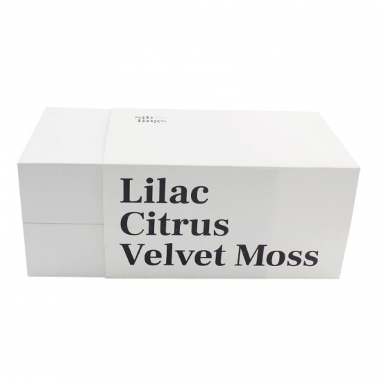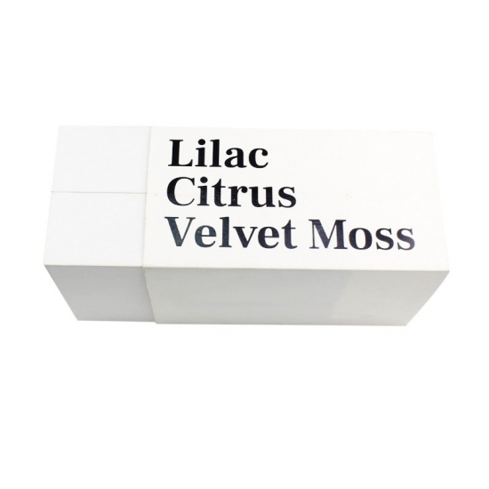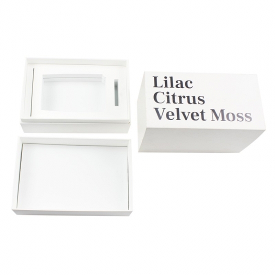 Коробка изготовлена из художественной бумаги плотностью 157 г и серого картона, её размеры: длина 29 см, ширина 17 см, высота 11 см. На одной стороне коробки напечатан текст, а на верхней крышке — чёрный логотип.