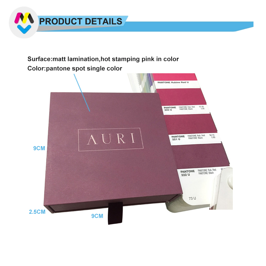 Создайте свою собственную уникальную ювелирную бижутерию в простых модных картонных коробках-ящиках, матовая ламинация, горячее тиснение розового в фиолетовом цвете, используйте цвета Pantone.