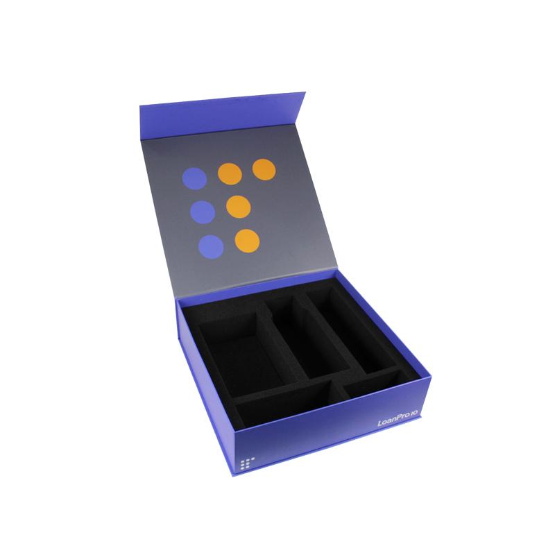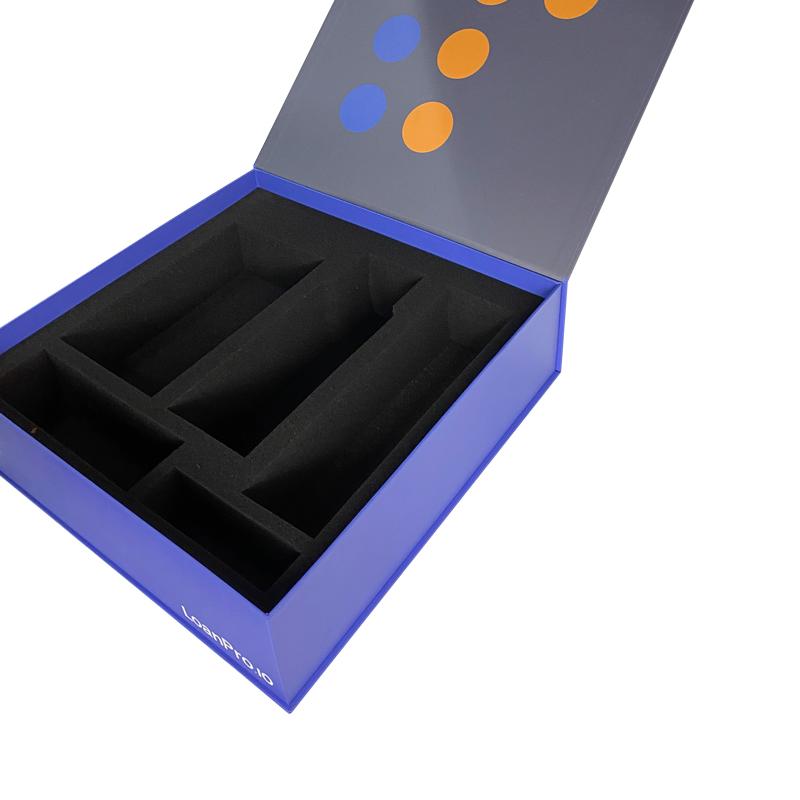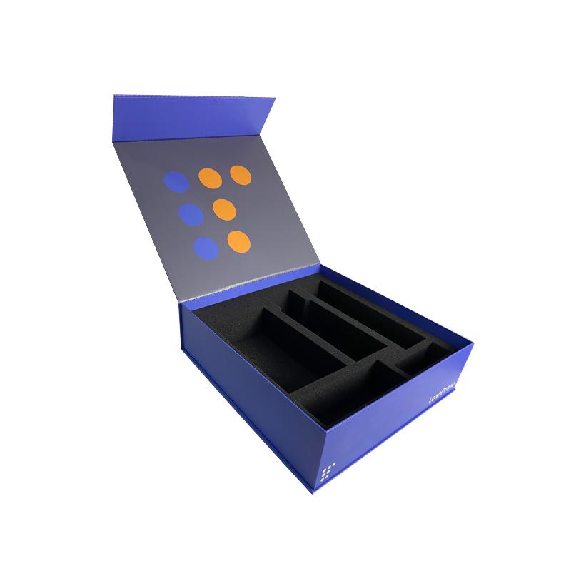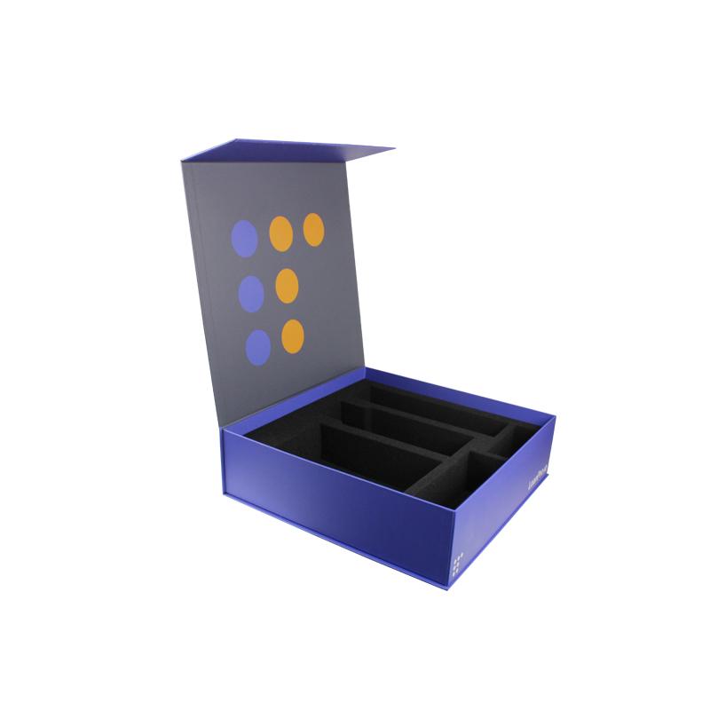 Эта магнитная коробка в твердом переплете изготовлена из художественной бумаги плотностью 120 г/м², ламинированной высококачественным серым картоном толщиной 2 мм, с вырубной вставкой из пенопласта и магнитной застежкой. Используемое нами магнитное поле мощнее, чем у обычных заводских. Благодаря этому мы заслужили высокую репутацию у наших клиентов.