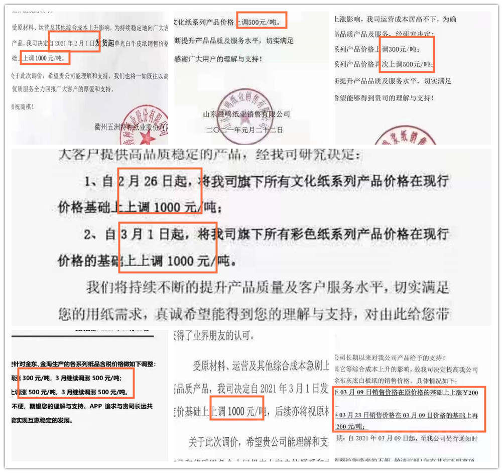 В Китае ситуация ещё более безумная. Мы уже несколько недель получаем уведомления о повышении цен от всех наших поставщиков бумаги, как вы можете видеть ниже. Если у вас есть заказ на… индивидуальные упаковочные коробки , настоятельно рекомендуем сделать заказ как можно скорее. Лучше раньше, чем позже.