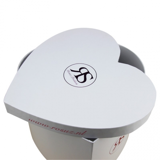 Высококачественная коробка в форме сердца. С крышкой и белоснежным принтом. Очень декоративная и красивая, отлично подойдёт для пар и для упаковки цветов.