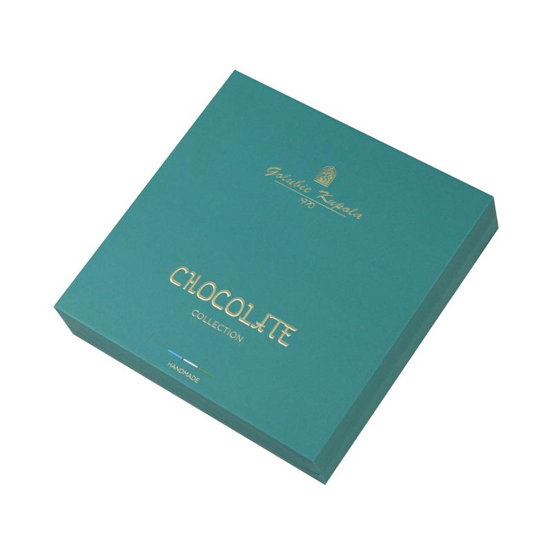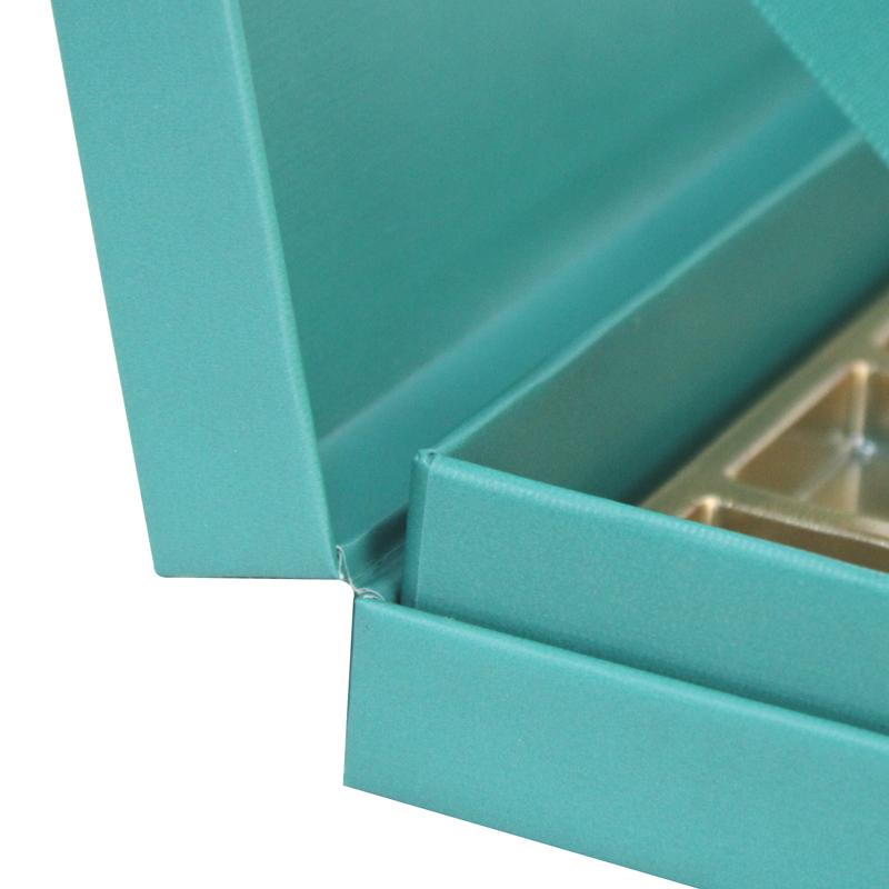 3. материал коробки: Специальная зеленая бумага плотностью 120 г/м² + серый картон толщиной 2 мм + блистерная вставка + черная шоколадная бумага