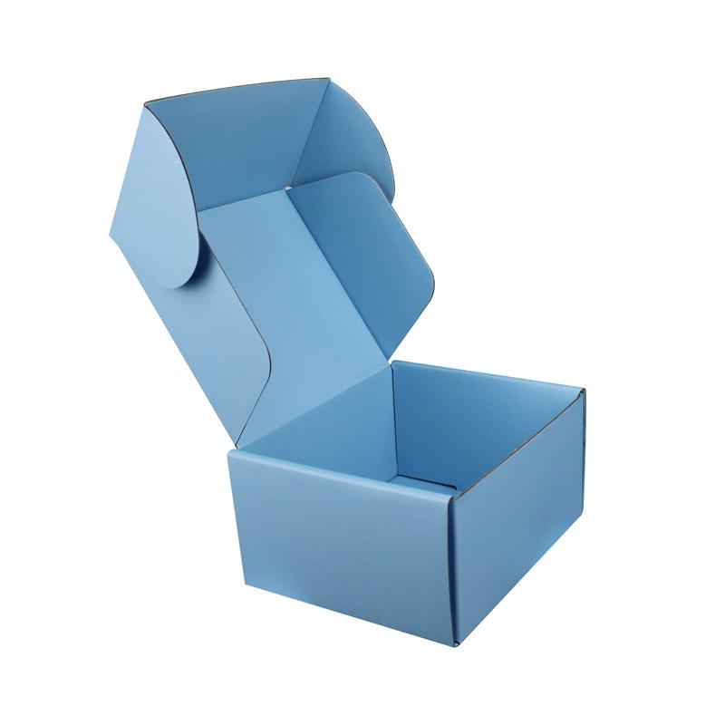 Персонализированные синие цветные гофрированные плоские транспортные коробки с тиснением логотипа