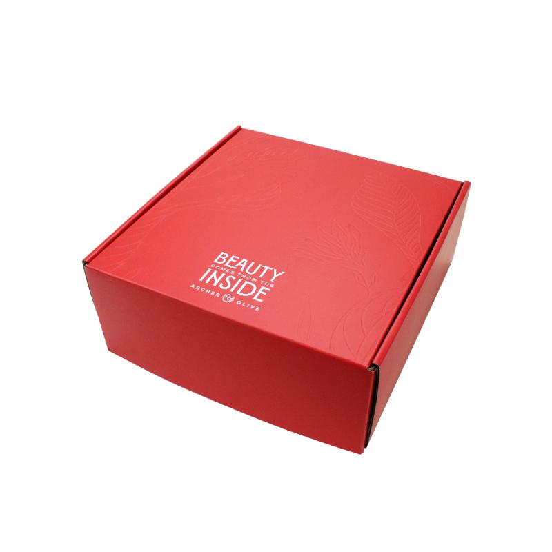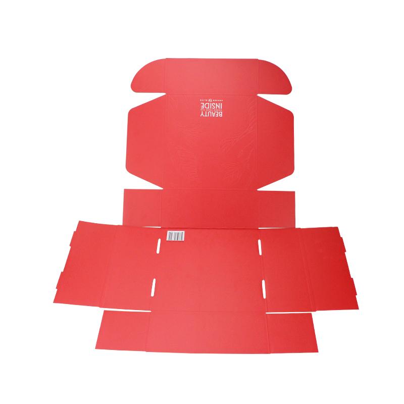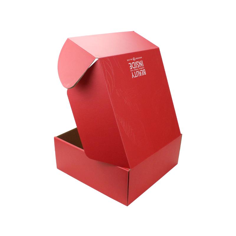 Это гофрированные коробки большого размера Изготовленная из гофрированной бумаги CCNB+BE плотностью 300 г, эта почтовая коробка большого размера, но при этом очень элегантная и особенная, снаружи на полностью красной поверхности находится белый логотип с тисненым узором в виде листа, внутри — однотонная крафт-бумага.