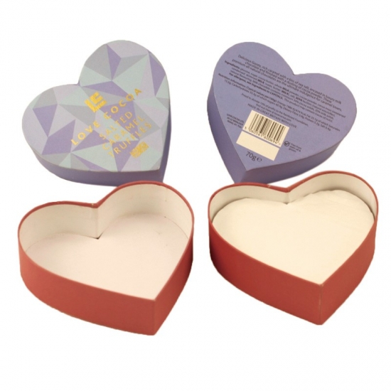 Это небольшая подарочная коробка с крышкой и дном из милого фиолетово-розового шоколада премиум-класса, которая сделал из художественной бумаги C2S плотностью 157 г + серого картона плотностью 1200 г, внутренняя прокладка - блистерный пластиковый разделитель для шоколада.