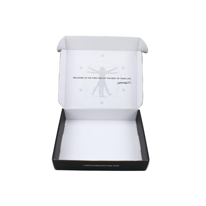 Это прямоугольный почтовый ящик полный черной печати, которая сделана который сделан из флейты CCNB+WE 300 г + 300 г CCNB, внутри белый фон с логотипом .