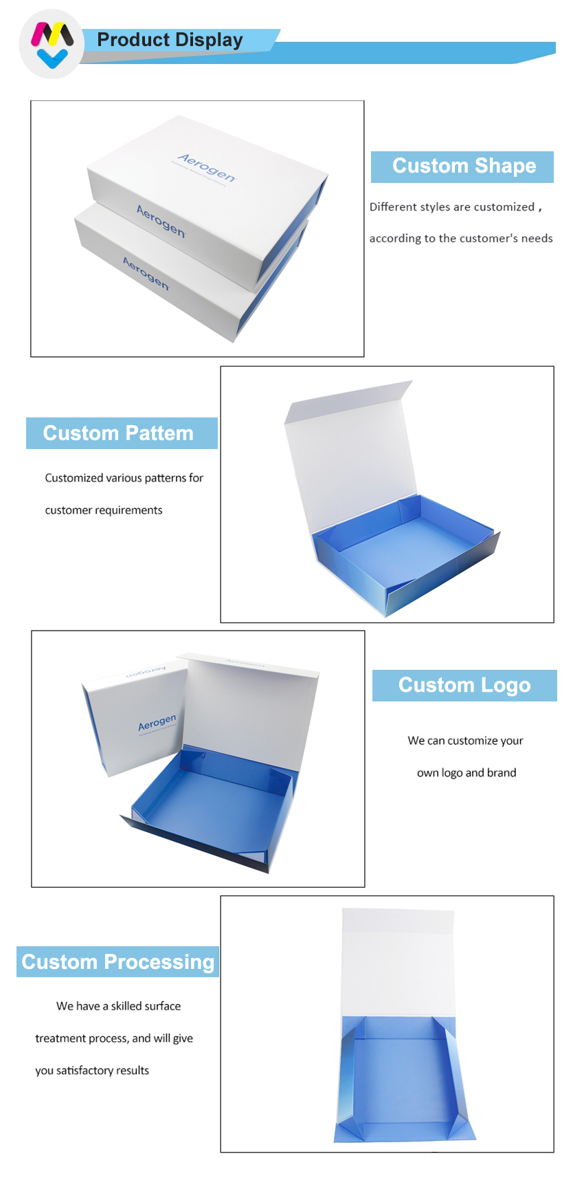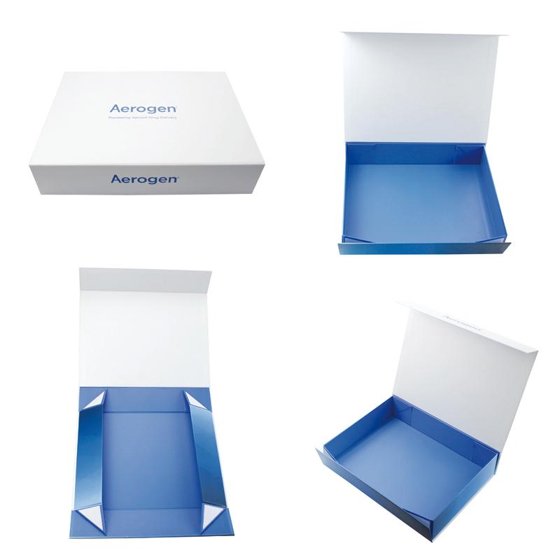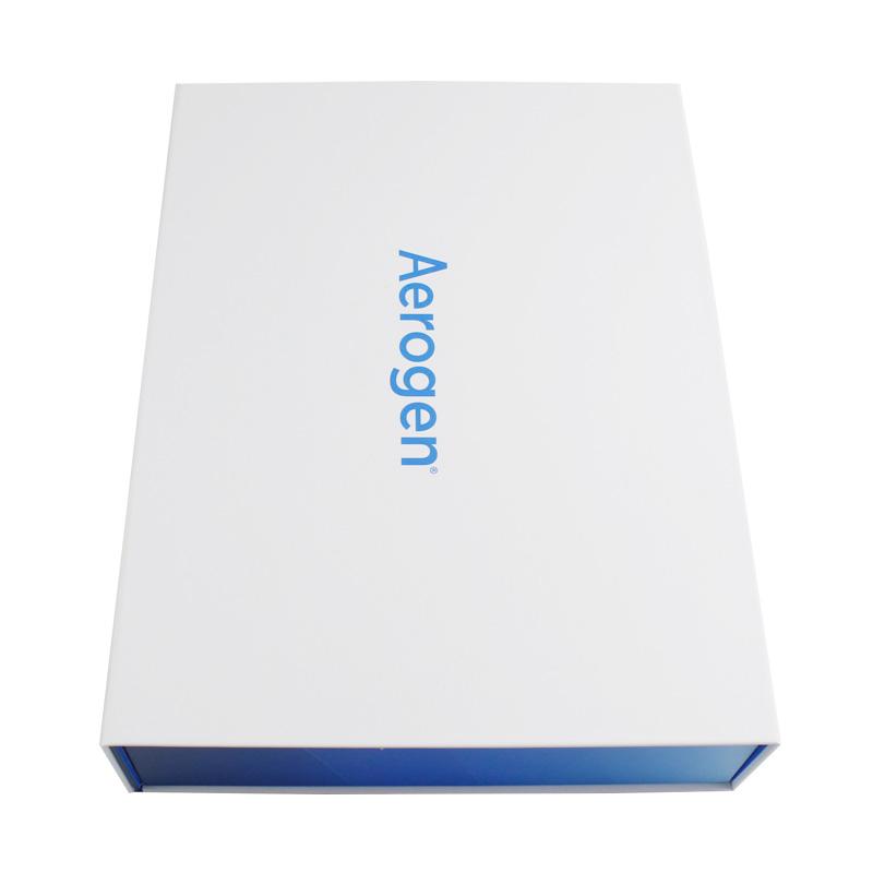 Это простая белая коробка с напечатанным логотипом, внутри изготовленная на заказ синяя картонная складная коробка, изготовленная из художественной бумаги C2S плотностью 157 г + серого картона плотностью 1200 г, матовая отделка поверхности.