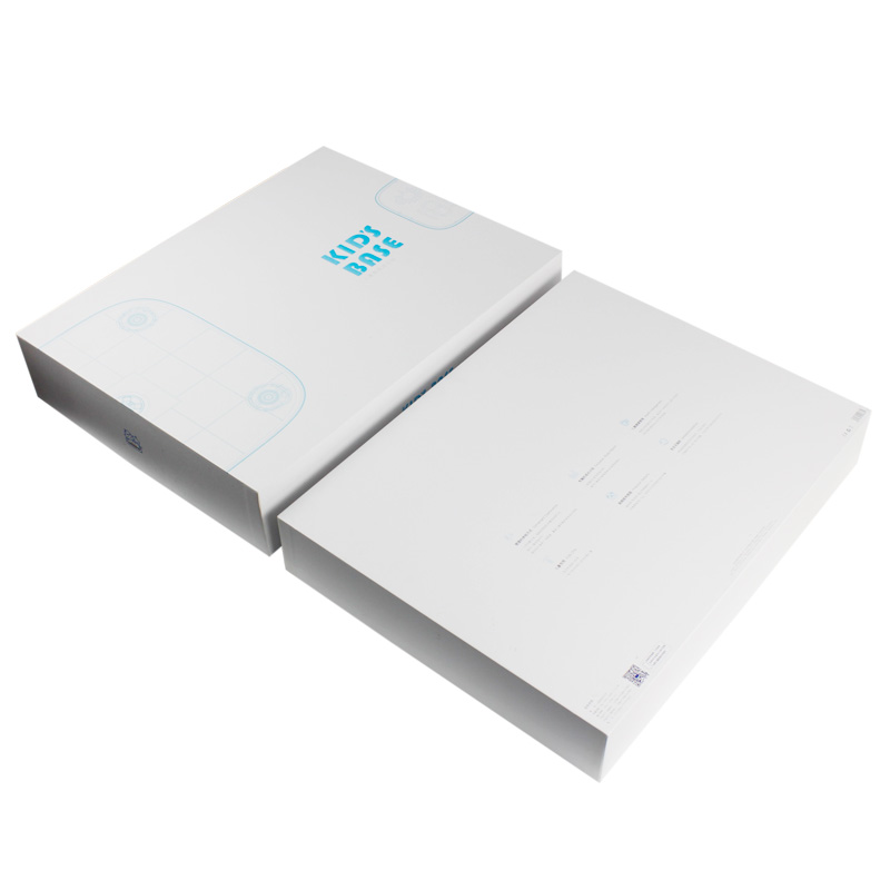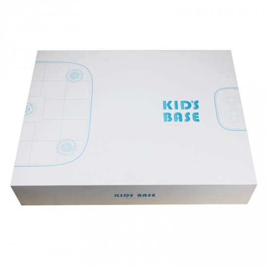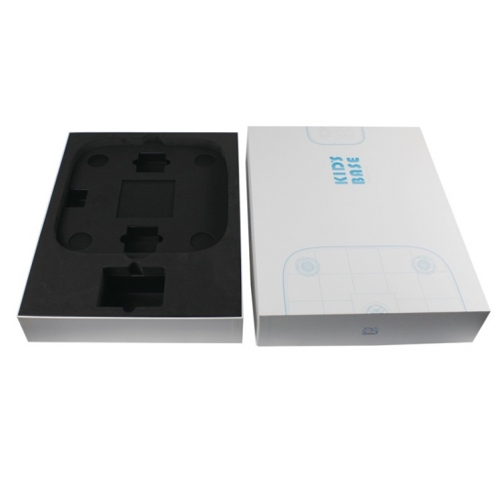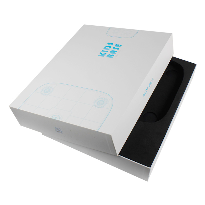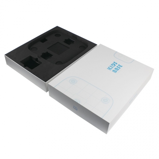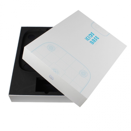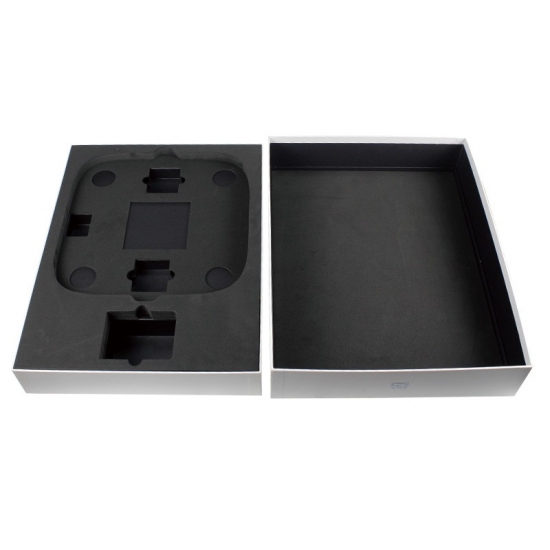 Это верх и низ коробка который сделал из художественной бумаги C2S плотностью 157 г + серого картона плотностью 1200 г, синяя текстурная печать логотипа на коробке, внутри коробки имеется вставка из черной губки индивидуальной формы.