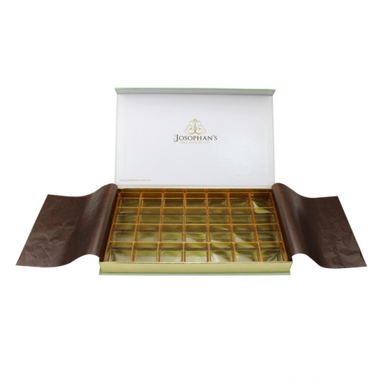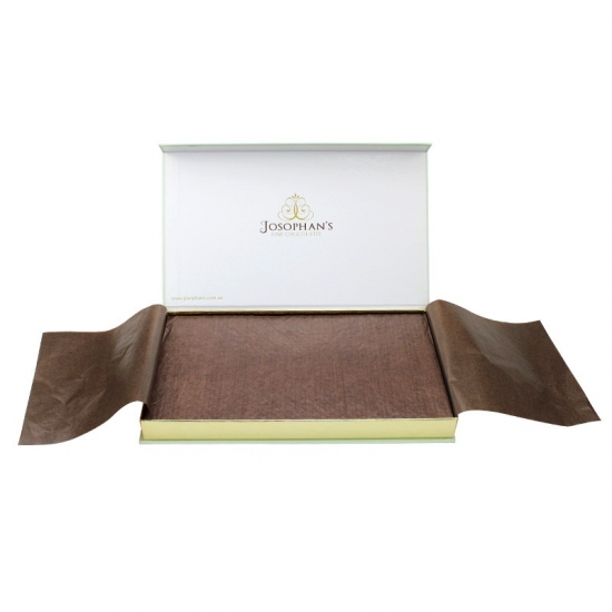 Подарочные коробки для шоколада Green Chocolate Flip Top с магнитной защелкой. Простой белый дизайн, внутренние аксессуары: пластиковый лоток, бумага для копирования. Сдержанная роскошь, экономичность и красота. Подходит для всех видов упаковки шоколада.